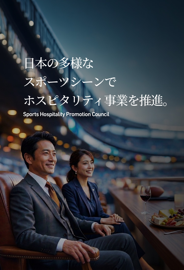 スポーツホスピタリティは、スポーツを取り巻く多様な分野の、様々な事業者の皆さんの協業により初めてサービスを提供できます。そのため、スポーツホスピタリティを継続的に強く大きく育て、スポーツや地域経済の発展につなげて行くためには、多くの事業者や団体の方にご参加いただき、当協議会と共にスポーツホスピタリティの普及発展にご支援いただけますと幸いです。